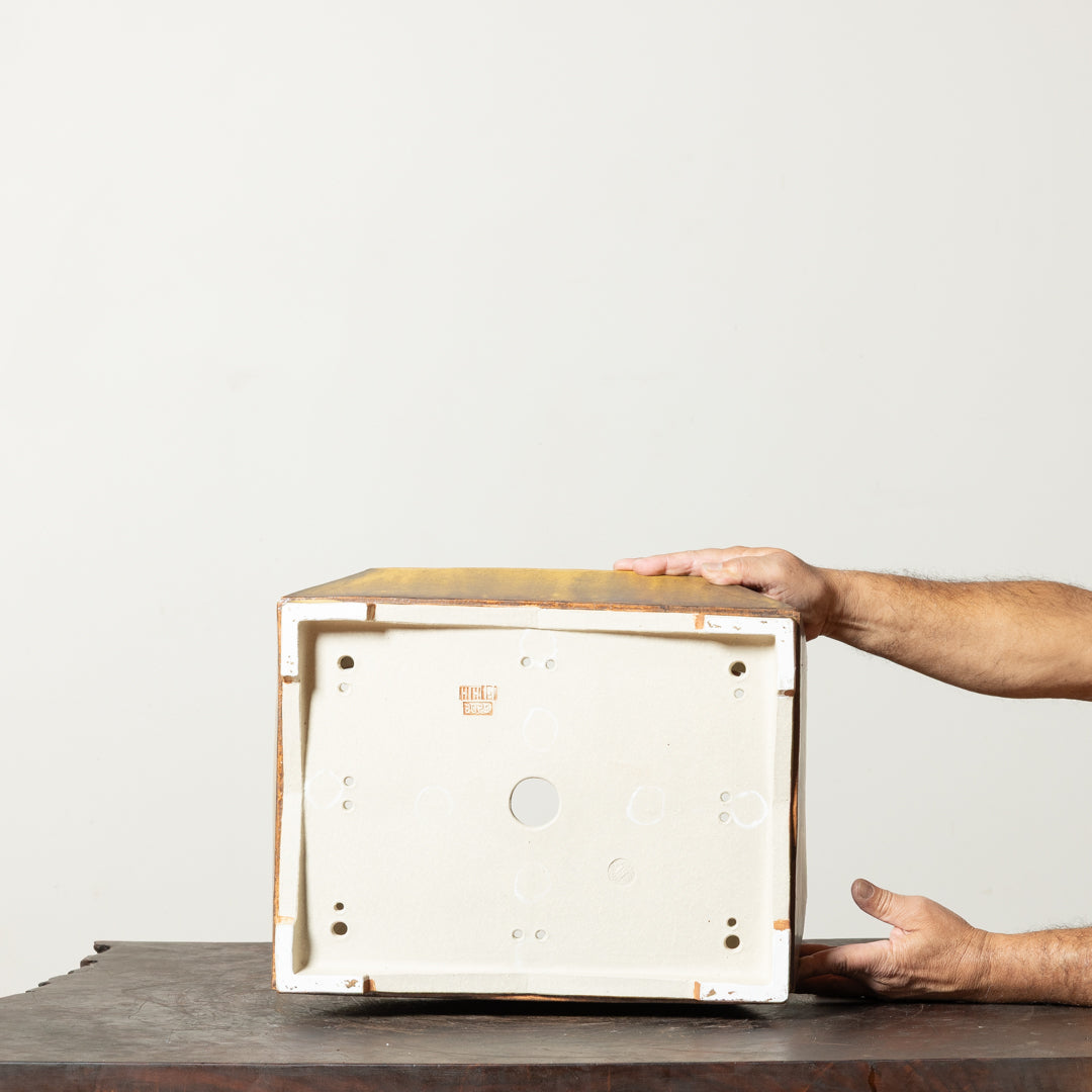 This untextured container by renowned Austrian ceramicist Horst Heinzlreiter offers both function and beauty. What Horst’s smooth containers sacrifice in texture they more than make up for with his complex glazes that provide an incredible depth of colors and a vast surface of moving and shifting tones. Horst’s craftsmanship is even more evident by the patina on the surface of his glazed containers. Each container is rubbed down with special cloth until the surface shine is dulled to a perfect glow.